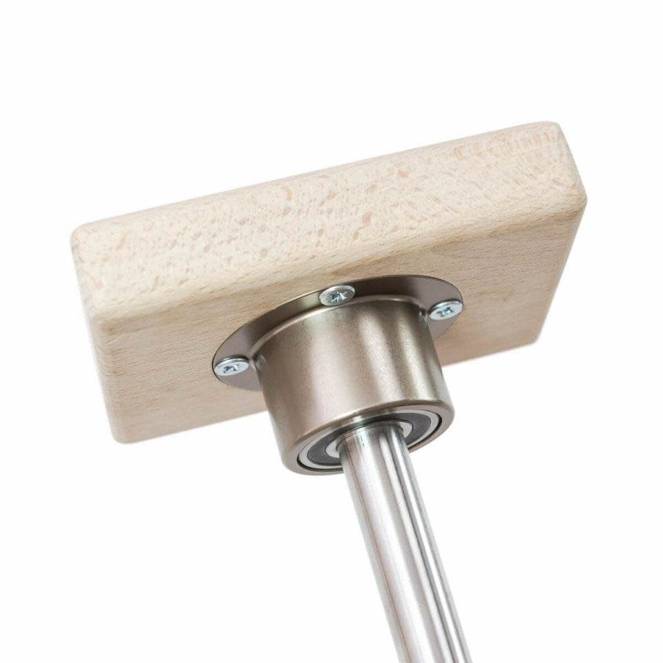 Rotierender vertikaler Block auf Einwegkugellager. Der Block dreht sich nur in eine Richtung. Geben Sie unbedingt Ihre Wahl an. Der Ergal-Flansch kann nicht vom Lauf entfernt werden. Alle Komponenten werden mit hochpräziser CNC-Technik hergestellt. Die Flansche aus Leichtmetall passen perfekt in unsere 18 mm Edelstahlstangen und verleihen der Struktur außergewöhnliche Stabilität. Die massiven Buchenblöcke messen 13cm x 10cm x2,7cm dick in der Version Rechteckig und 125 mm Durchmesser x 30 mm Dicke in der Version Kreisel