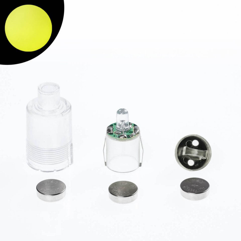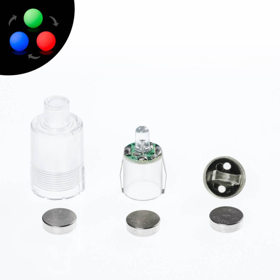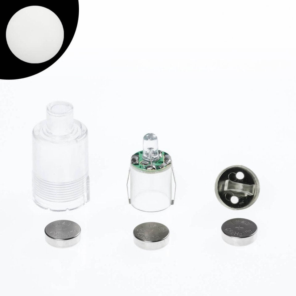Ersatz- oder Ersatz-LED-Einheiten für Glow Bälle, Glow Poi und Glow Keulen. Ein einfaches und kraftvolles Licht, mit dem Sie auch Ihre eigenen Leuchtrequisiten erstellen können. Jede Einheit enthält einen Schraubverschluss, ein Kunststoffgehäuse und einen Satz Batterien, wie in der Abbildung gezeigt. Benötigt 3 L1142 Knopfzellenbatterien.