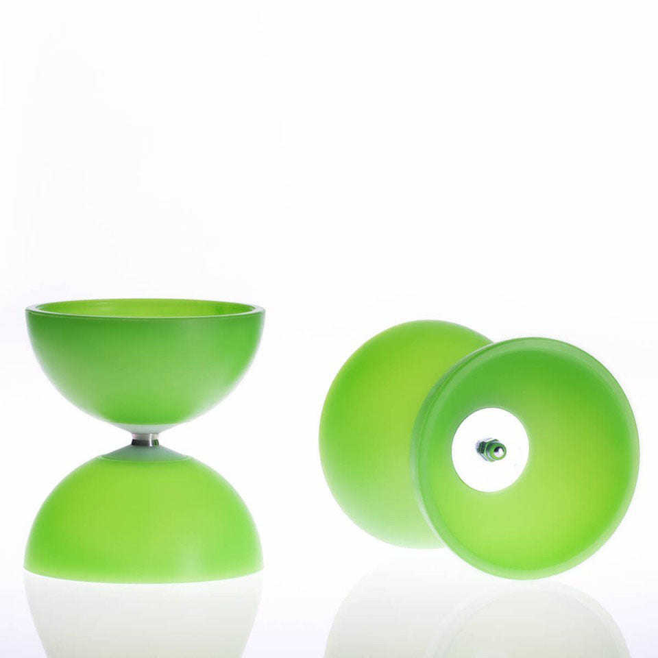 La nueva versión tiene copas más ligeras y un eje de acero inoxidable de diámetro aumentado que se encaja en los conos de Nylon, garantizando una sensible reducción de las vibraciones. Una gran mejora en calidad y rendimiento que coloca el COMET en competencia directa con los mejores Diabolo de estas dimensiones. 5 colores fluorescentes más la versión fosforescente. Excelente Diabolo de eje fijo para comenzar y practicar trucos incluso de alto nivel con 1 y 2 Diabolos. ¡Compatible con el kit de luces!