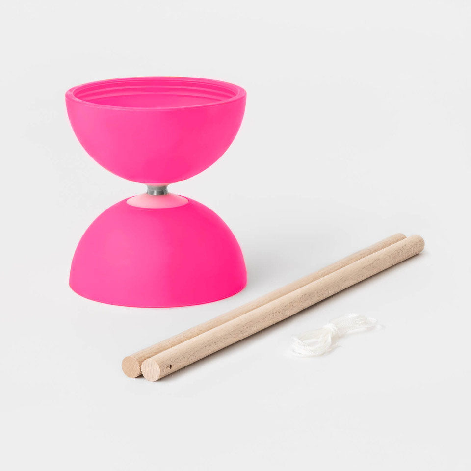 La nueva versión tiene copas más ligeras y un eje de acero inoxidable de diámetro aumentado que se encaja en los conos de Nylon, garantizando una sensible reducción de las vibraciones. Una gran mejora en calidad y rendimiento que coloca el COMET en competencia directa con los mejores Diabolo de estas dimensiones. 5 colores fluorescentes más la versión fosforescente. Excelente Diabolo de eje fijo para comenzar y practicar trucos incluso de alto nivel con 1 y 2 Diabolos. ¡Compatible con el kit de luces!
