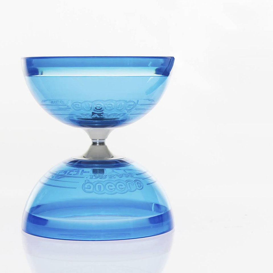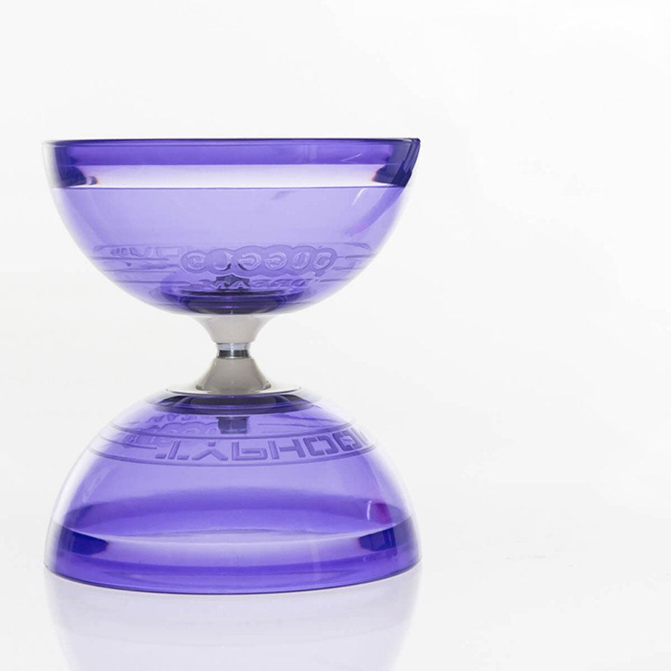 El TYPHOON es un hermoso diabolo de alto rendimiento. Es versátil y muy apreciado por los puristas del eje fijo, excelente para ser utilizado individualmente, pero gracias a sus características, es excelente para el uso de varios diablos simultáneamente. Las copas de gran tamaño tienen el peso distribuido mayormente en el borde exterior, lo que hace que el TYPHOON sea extremadamente estable a todas las velocidades. Pesa 240 g, por lo que es estable pero al mismo tiempo no demasiado pesado para el uso de 2, 3 o más diablos. Las copas semirrígidas transparentes no se frenan entre sí en caso de colisión. El eje de perfil cóncavo facilita las correcciones. Las hermosas copas de TPE transparente también resisten los impactos más violentos y son fantásticas en combinación con el KIT LUMINOSO.