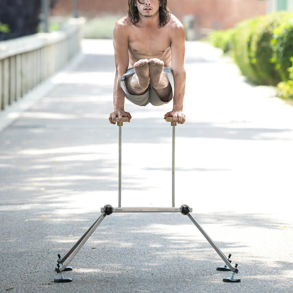 GERRIS Plataforma Universal de Equilibrio de Manos La Plataforma Universal de Equilibrio de Manos Gerris, de Play Juggling (División de Circo), es una plataforma universal con altura totalmente ajustable, configuraciones de hombros y almohadillas de nivelación para el suelo.