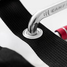 Note the eyelet in the centre of the handle, compatible with all commercially available carabiners, which guarantees total safety against the ballast falling, even if one of the seams should be damaged and fail.