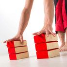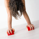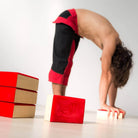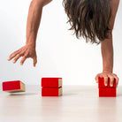 El bloque se puede usar tanto en posición horizontal como vertical. Su revestimiento de terciopelo proporciona una superficie excelente y de fácil agarre. Los bloques miden 15 cm x 10 cm x 5,5 cm y pesan un promedio de 350 gramos. Es mucho más fácil mantener el equilibrio sobre los bloques de pino que en el suelo. Los bloques ofrecen un mejor control y agarre. Además, reducen la tensión en las muñecas, ya que requieren menos flexibilidad. Con los bloques de pino, puedes practicar durante más tiempo con menos fatiga corporal y menos riesgo de lesiones.