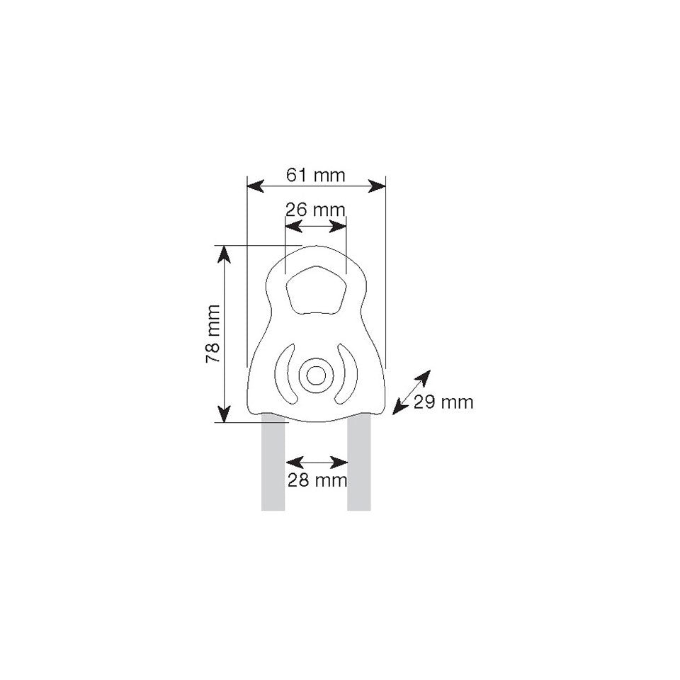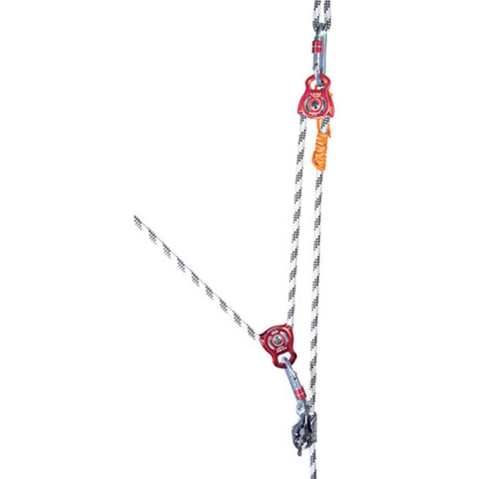 Possibilité d'utilisation avec nœud autobloquant Prusik, installable des deux côtés. Rotation sur paliers autolubrifiants : la solution idéale pour des utilisations légères à basse vitesse. Rendement : 80 %. Corps et roue en alliage d'aluminium, axe en acier inoxydable.