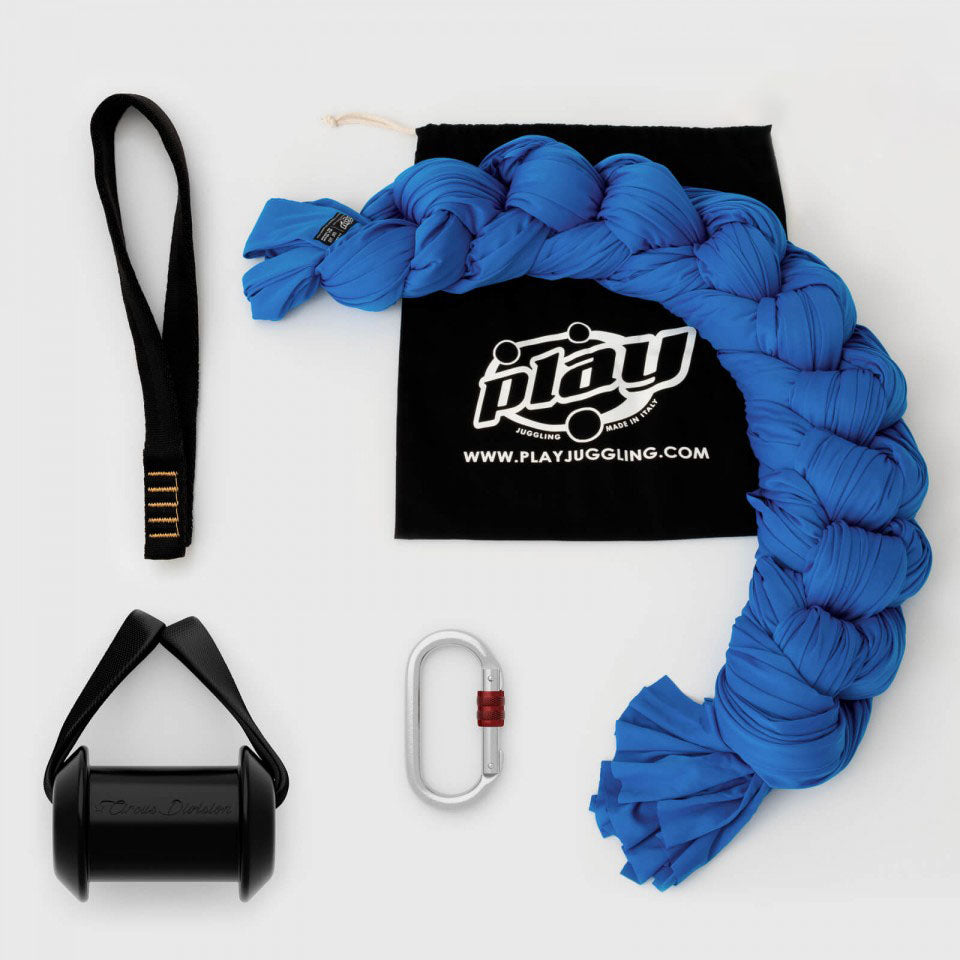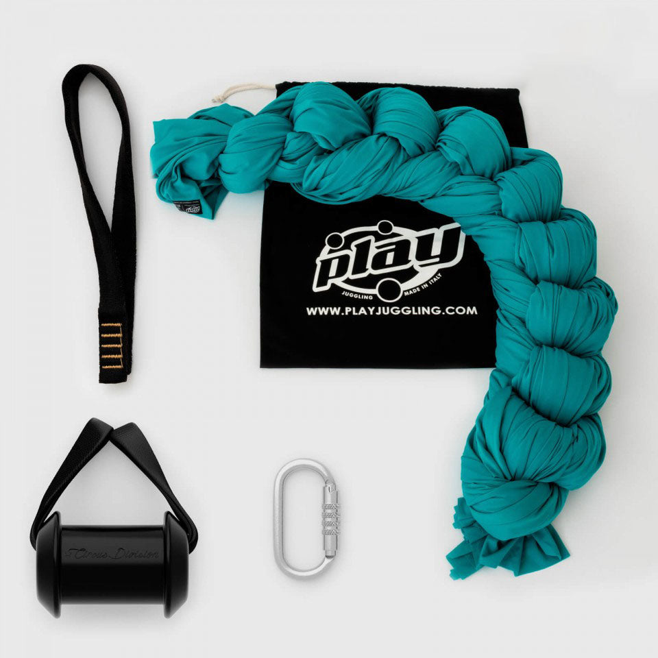 La nostra proposta per praticare danza acrobatica con tessuto aereo in casa o in palestra, in presenza di soffitto con travi libere. Acquistando questo prodotto riceverai direttamente a casa tua un kit composto da tessuto in poliestere (della lunghezza che scegli tu), gancio per tessuti, una resistente cinghia da 80 cm e un moschettone autobloccante. Tutta l'attrezzatura presente nel kit è certificata, 100% Made in Italy e adatta ad un utilizzo professionale o amatoriale, e può essere assemblata senza l'utilizzo di strumenti specifici. Prima di procedere all'installazione ricorda di far controllare la robustezza della trave ad un perito, e di assicurarti che sia idonea.