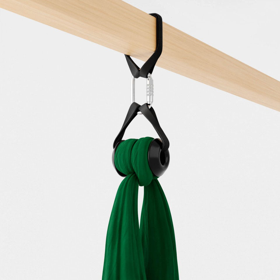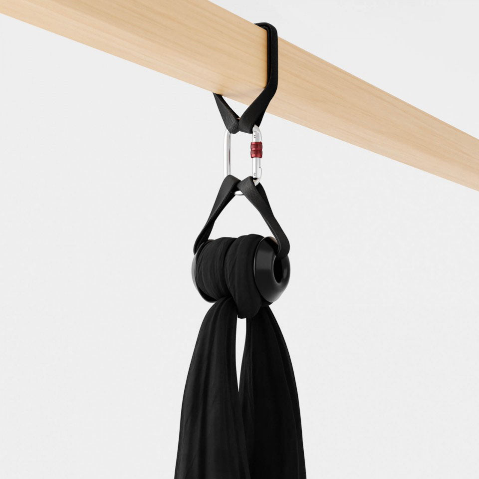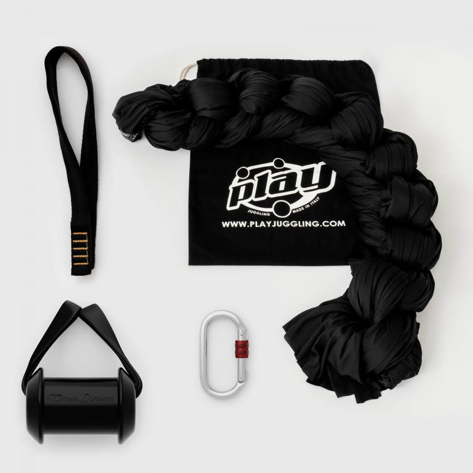 CONTENUTO KIT - tessuto aereo + gancio di ancoraggio + attacco trave (cinghia da 80 cm + moschettone auto-bloccante)