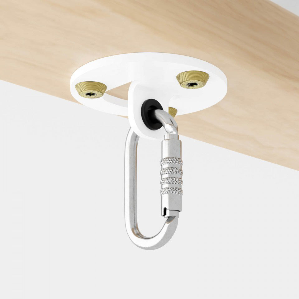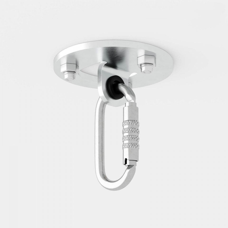 Realizzata in acciaio zincato di 6 mm, questa robusta piastra per acrobatica aerea è l'ideale per ancorare qualsiasi attrezzo aereo, come tessuti, cerchi, trapezi e corde, direttamente al tuo soffitto. Con un diametro di 12 cm e un interasse tra i fori inferiore a 10 cm, è perfetta per l'installazione sia su travetti di cemento armato che su travi di legno; la protezione in silicone antiusura dell'occhiello è la rende compatibile con tutti i Moschettoni. Scegli tra tasselli antisismici per cemento o viti autoforanti per legno, per un'installazione efficace e su misura. Affidati alla nostra piastra per un'esperienza acrobatica sicura e gratificante.
