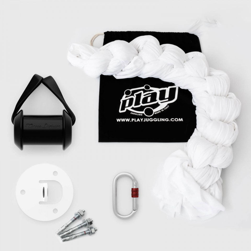 Prova il nostro Kit tessuti aerei: tessuto aereo, gancio di ancoraggio, piastra per soffitto e moschettone autobloccante, tutto il necessario per allestire una postazione professionale dedicata all'acrobatica aerea con tessuti. Tutti gli articoli presenti nel kit sono Made in Italy e sono certificati secondo gli standard europei di sicurezza. Compatibile con un utilizzo professionale o amatoriale, il nostro kit per tessuti può essere installato in ogni ambiente dotato di soffitto standard grazie alla piastra di ancoraggio.