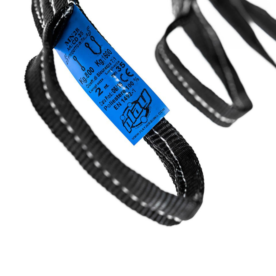 CEND type polyester band mm. 35, color BLACK, double layer, length 1.5m - 2.00mt - 2.5mt. Capacity 800 kg. in single, 1,600 kg in double, safety factor 1: 7. Certified and CE marked. Produced in Italy