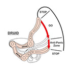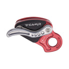 A lightweight, compact auto-braking descender for rope access and rescue designed for semi-static ropes ranging from 10-11 mm. Anti-panic function in the lever re-engages the cam if the handle is pulled too far where it could lead to unsafe descent speeds. The body and lever are made of robust hot-forged aluminum alloy. Mechanical parts are made of precision-cast stainless steel. The internal mechanism and locking cam use a innovative design for smooth action on the rope which prevents rapid wear-and-tear and absorbs energy from small shocks with a slight amount of rope slippage. The fluid action on the rope also allows the Druid to function well for rope ascent. The cam can be de-activated with a trigger to allow quick sliding of the rope in situations with no load or limited load. Steel ring for attaching a keeper cord.
