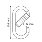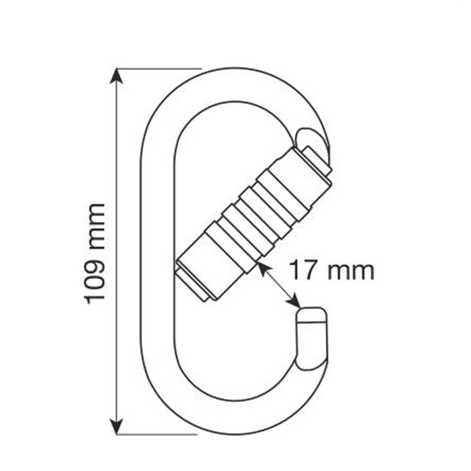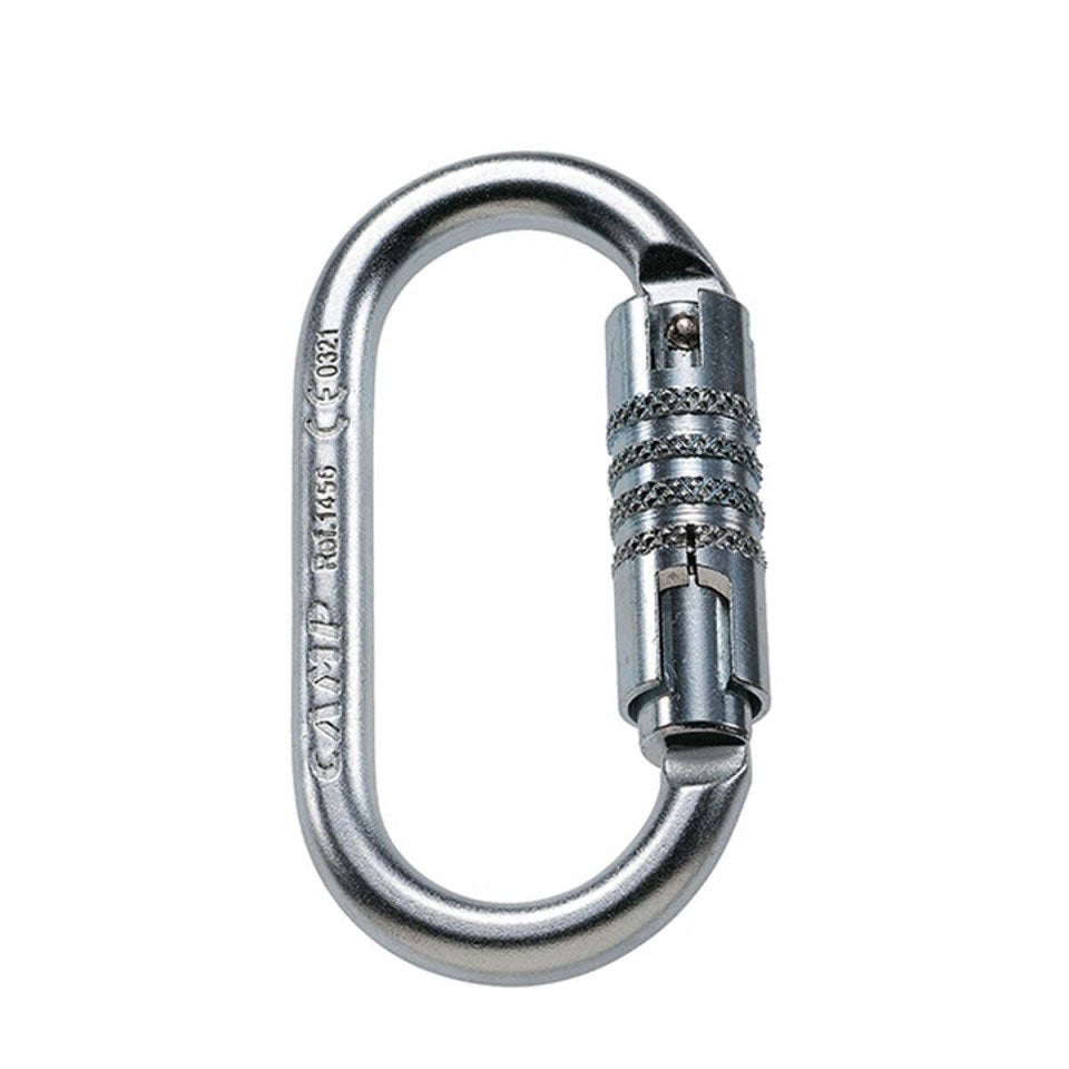 Automatic lock requires three actions (slide, twist and pull) to open. Zinc plating helps prevent rust in humid environments. Keylock nose. Auto-locking steel oval carabiner with a tremendous minor axis strength.
