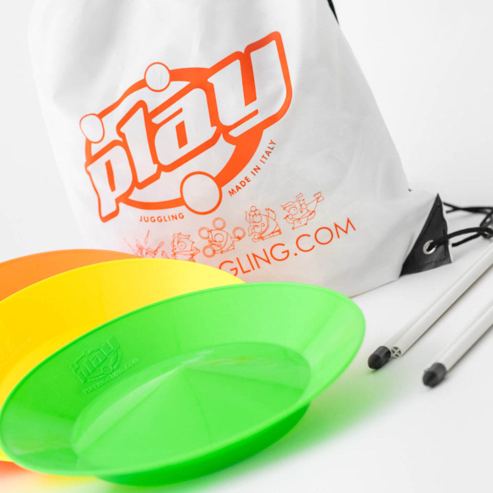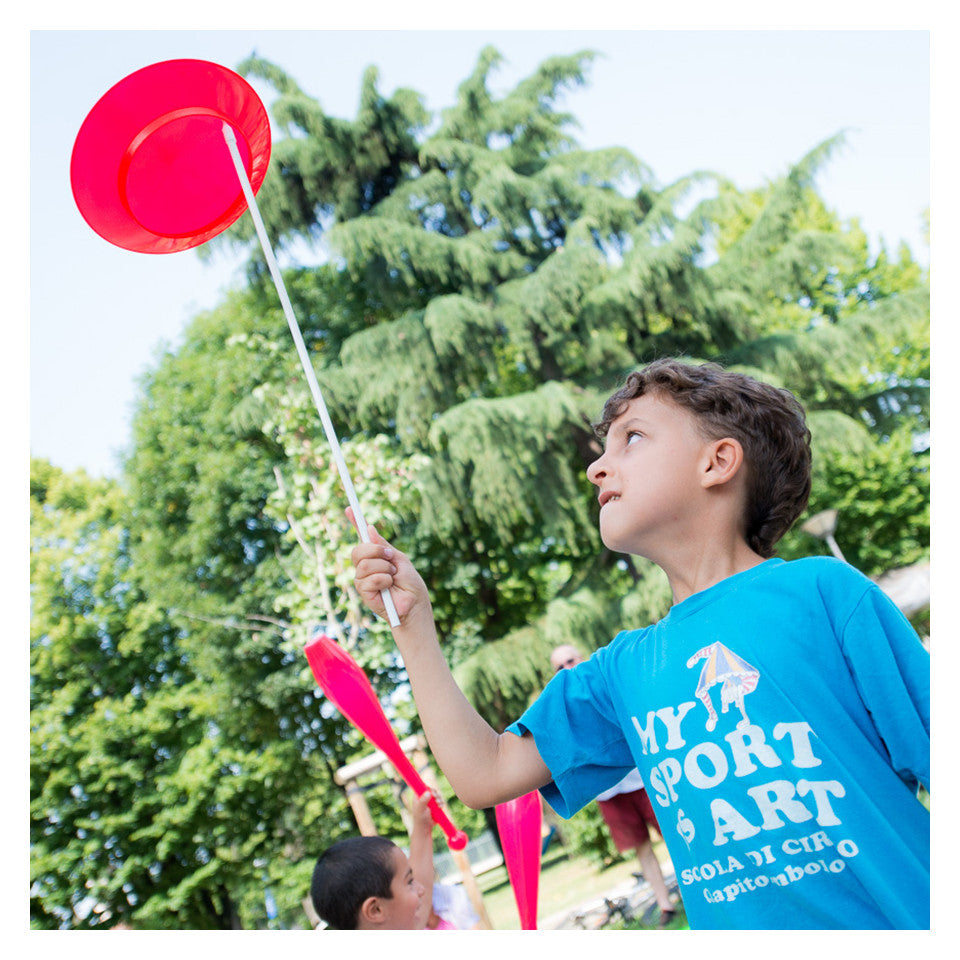 Our spinning plates are the perfect companions for budding young artists, promising hours of safe and entertaining practice. They are the ideal choice for introducing children to the thrilling world of the circus while developing their balance and dexterity skills. Spinning Plates with indestructible plastic stick which is available either in a single piece or divisible into 2 parts for easier transport. They are very soft and therefore safe for children and not noisy when dropped. The "pass par tout" of circus disciplines! Nothing better to let the little ones practice the rudiments of balance in a fun, immediate and very gratifying way. A truly essential tool to bring juggling into any educational and recreational environment.